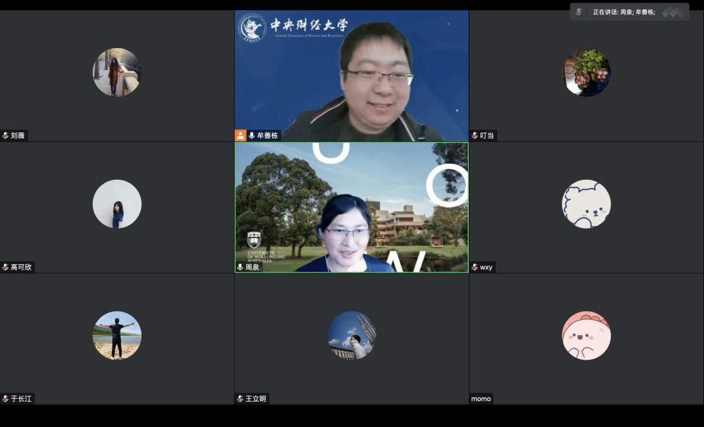 At 2:00 p.m., November 18, 2022, the Business School of Central University of Finance and Economics (CUFE) held the 18th Session of the Excellent Academic Forum Lecture Series in 2022 online through Tencent Meeting. Dr. Zhou Quan from the School of Business of the University of Wollongong was invited as the keynote speaker of this lecture, and more than 20 people (including teachers, master and doctoral students, and undergraduate students) attended this lecture.