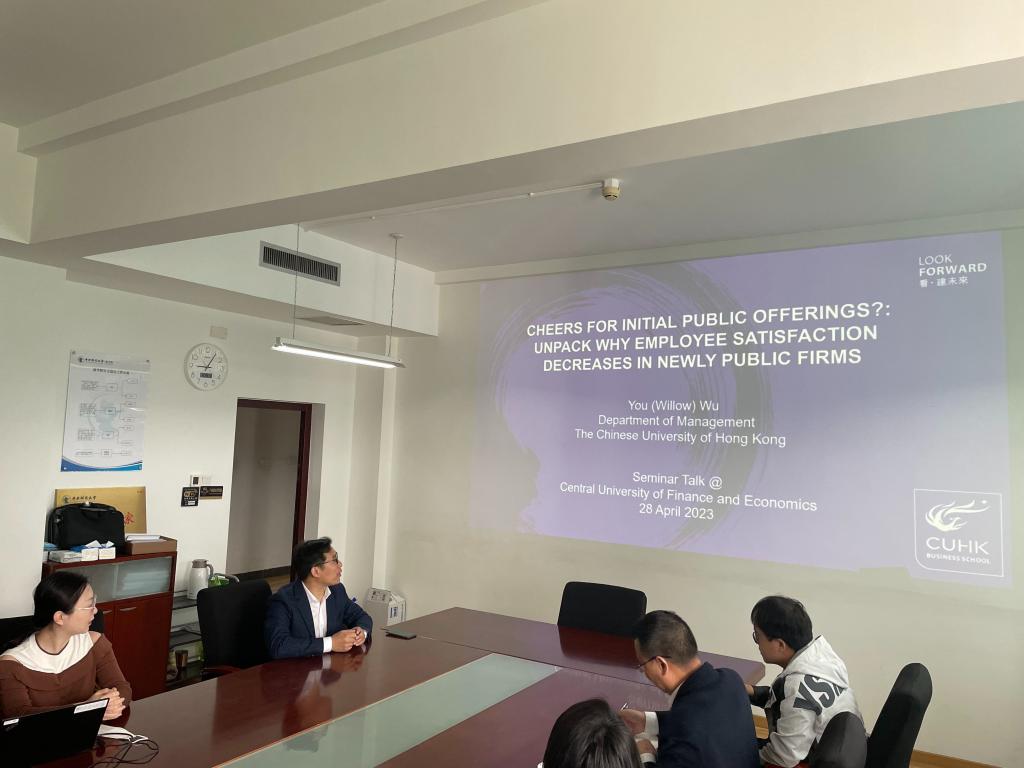 On the morning of April 28, 2023, the Business School held the 2nd Session of the Excellent Academic Forum Lecture Series in 2023 to celebrate the 20th anniversary of the establishment of the Business School and the MBA Education Center at the Conference Room 615 of the Main Teaching Building. Wu You, an assistant professor of CUHK Business School, was invited as the keynote speaker of this forum, and more than 30 people (including teachers, master and doctoral students, and undergraduate students) attended this forum.