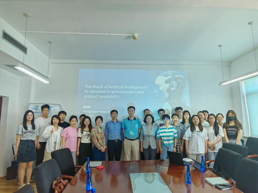 The topic of the lecture delivered by Professor QiYinanis “Too Much of Artificial Intelligence?AI adoption in procurement and product availability”.This research aims to explore how the application of supplier AI affects the availability of retailer products during the procurement process. Theoretically, the application of AI in the procurement process may have two conflicting effects on product availability: an efficiency-enhancing effect that increases product availability, and an expertise-excluding effect that decreases product availability. The application effect of AI depends on the trade-off between these two effects. Furthermore, the trade-off between these two opposing effects may vary with the intensity of AI use, and accordingly result in non-linear effects on product availability. This research collects data from a leading online retailer to study how the use intensity of supplier AI affects the retailer's product availability. The empirical results show that the use intensity of AI has a positive and significant overall effect. Nonlinear analysis shows that as the use intensity of AI increases, this effect presents an inverted U-shaped trend. This indicates that more AI applications do not necessarily lead to better product availability. Excessive use of AI in procurement may have adverse effects on product availability.