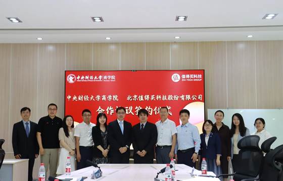 On May 30, the Business School of Central University of Finance and Economics signed a cooperation agreement with BeijingZhi-Tech Group.Lin Song, dean of the Business School of Central University of Finance and Economics and director of the MBA Education Center, YangZhongying, deputy secretary of the Party Committee of the Business School, LiuXiaoyuanand ChenJinliang, deputy deans of the Business School, ZhuFei, deputy director of the MBA Education Center and deputy dean of the Business School, relevant teachers and staff of the Business School, chairman SuiGuodong, senior vice president ChenYingqianand board secretary LiuWeiliangof BeijingZhi-Tech Group, ZhangAichao, executive director of the Consumer Industry Research Institute of BeijingZhi-Tech Group, Wang Ying, vice president of technology & strategic channels of the Consumer Industry Research Institute of BeijingZhi-Tech Group, and relevant staff attended the signing ceremony. The ceremony was presided over by ChenJinliang, deputy dean of the Business School.