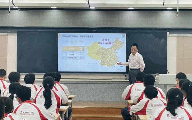 In the enrollment publicity session, LiYuexin, the leader of the Gansu Provincial Enrollment Publicity Group and the secretary of the Party Committee of the Business School, gave a detailed introduction to the history, situation, disciplinary advantages, talent cultivation system and other aspects of CUFE. He emphasized the outstanding advantages of CUFE, encouraged students to actively apply for CUFE, and urged all students to cherish the time. LuJizhou, a member of the Gansu Provincial Enrollment Publicity Group of CUFE and an associate professor of the Department of Supply Chain and Operations Management of the Business School, gave a special lecture on the theme of "Entering the Supply Chain", which unveiled the mystery of supply chain for all the students in a humorous way, led them to explore the breadth and depth of the supply chain and discover the role of the supply chain in the national economic development, the improvement of competitiveness of enterprises as well as the convenience of personal life, and stimulated their strong interest in supply chain and economic management disciplines.