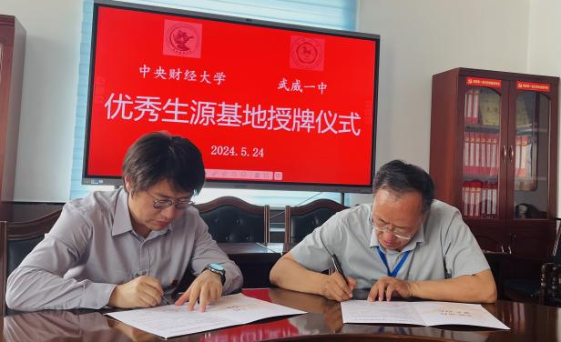 From May 21 to 24, 2024, LiYuexin, leader of the Gansu Provincial Enrollment Publicity Group of CUFE and secretary of the Party Committee of the Business School, LuJizhou, a member of the Gansu Provincial Enrollment Publicity Group of CUFE and an associate professor of the Department of Supply Chain and Operations Management of the Business School, and LiZhengchen, a member of the Gansu Provincial Enrollment Publicity Group of CUFE and an undergraduate counselor of theBusiness School went toJiayuguanNo. 1 High School,JiayuguanJiugangNo. 3 High School,ZhangyeNo. 2 High School, and WuweiNo. 1 High School in Gansu province successively to conduct undergraduate enrollment promotion work in Gansu Province. The Gansu Provincial Enrollment Publicity Working Group held discussions and exchanges with the leaders and teacher representatives of the four high schools, gained a deeper understanding of the history, situation and development condition of CUFE, and introduced the basic information of CUFE and the enrollment condition in Gansu province to the leaders and teacher representatives of CUFE. The two sides had sufficient discussions and exchanges on strengthening cooperation, improving the effectiveness of enrollment publicity and jointly building a bridge between basic education and higher education. After the discussions, CUFE signed the “Student Source Base Construction Agreement” withJiayuguanNo.1 High School,JiayuguanJiugangNo.3 High School,ZhangyeNo.2 High School andWuweiNo.1 High School, and held the awarding ceremony of “CUFE High-quality Student Source Base”. Among them,ZhangyeNo.2 High School engaged LuJizhou, an associate professor of the CUFE Business School, as the vice president of technology of ZhangyeNo.2 High School, opening a new chapter of cooperation between universities and high schools.