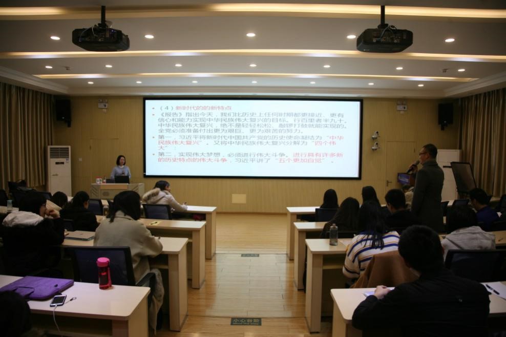 葛建新书记主要从中共十九大的主题与重要意义,砥砺奋进五年的历史性变革,新时代、新矛盾、新目标与新思想共三个部分解读了中共十九大报告。