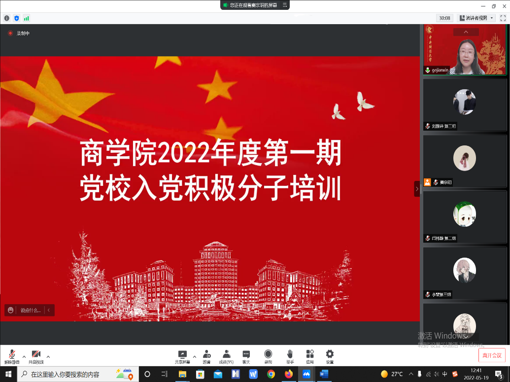 2022年5月19日,77779193永利官网党委书记葛建新老师以“端正入党动机”为主题,为学院100余名入党积极分子讲授专题党课。会议由党校班主任窦宗玥老师主持。