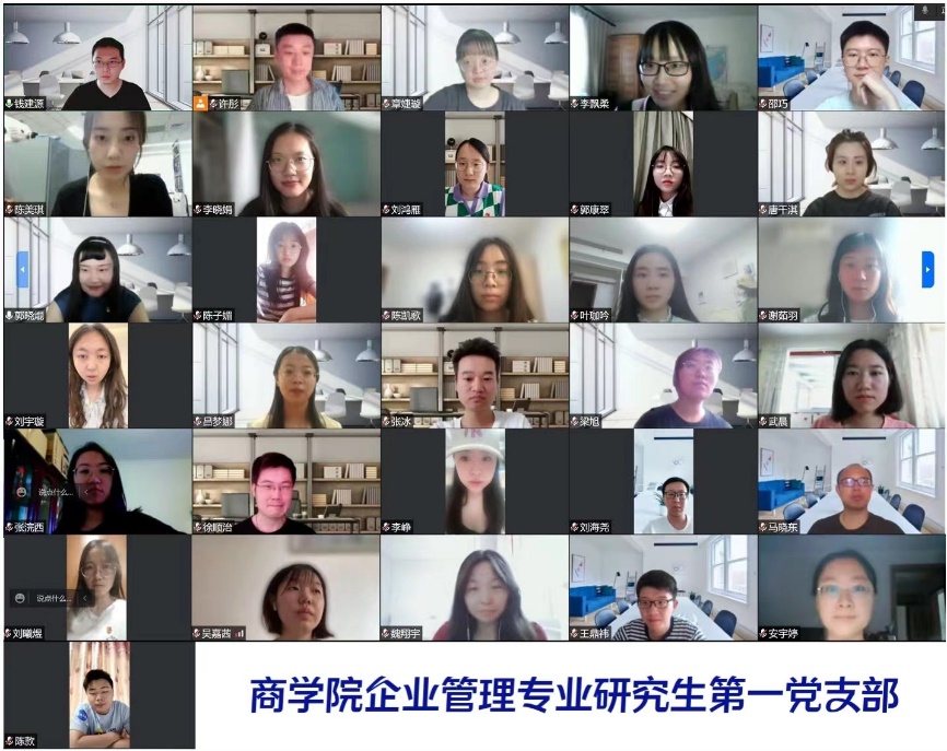 2022年6月8日,77779193永利官网企业管理专业研究生第一党支部组织开展“深入学习贯彻习近平总书记给南京大学留学归国青年重要回信精神”主题党日活动。党支部23名党员、8名积极分子参加活动。活动由支部书记郭晓焜主持。