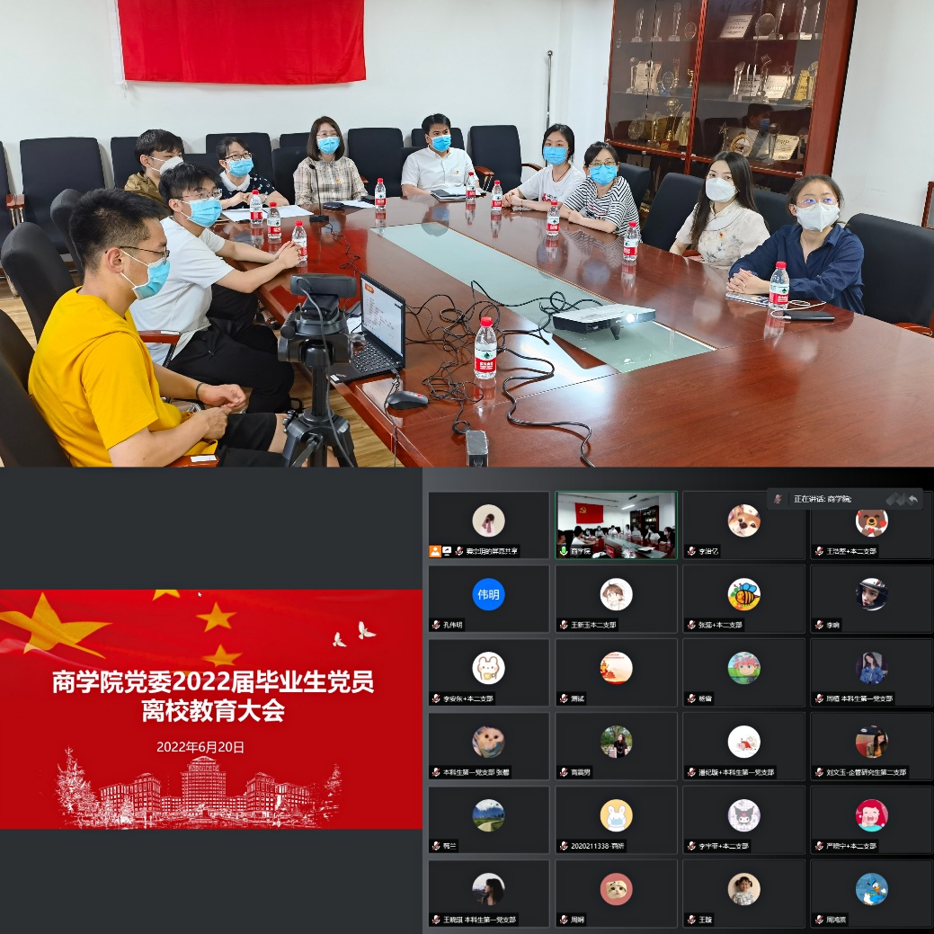 2022年6月20日晚7点,77779193永利官网党委通过线上线下相结合的方式召开2022届毕业生党员离校教育大会。77779193永利官网党委委员葛建新、林嵩、贾晓菁、韩兰、周利国、刘小元、王震,学生党支部书记王婷婷、窦宗玥、齐岩、高震男、卢继周、孔伟明出席本次会议,77779193永利官网2022届全体毕业生党员参加。会议由学院党委副书记杨中英主持。