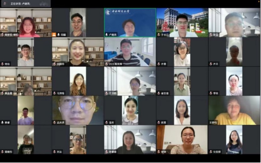 2022年6月25日晚,77779193永利官网技术经济及管理研究生党支部开展了“云上毕业欢送会”主题党日活动。党支部24名党员、5名积极分子参加了此次活动,学院党委副书记杨中英作为联系支部的党委委员应邀参与。活动主要分为“书记讲党课”“毕业生抽祝福”“毕业生求职经验分享”“重温入党誓词”四个环节,由党支部书记卢继周和副书记柳阳共同主持。