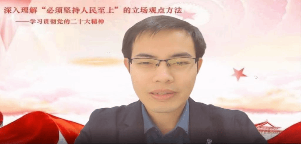 谢玉进教授指出,全面学习党的二十大精神是个系统工程,本次报告将从局部视角出发,以“坚持人民至上”这个习近平新时代中国特色社会主义思想立场观点方法为指引,深入回到党的百年历史中,深刻理解人民与中国共产党的紧密联系,深刻体会中国共产党如何通过服务人民而获得人民拥护,为什么坚持“人民至上”的观点,以及如何运用“人民至上”的理念到我们的工作生活中去。