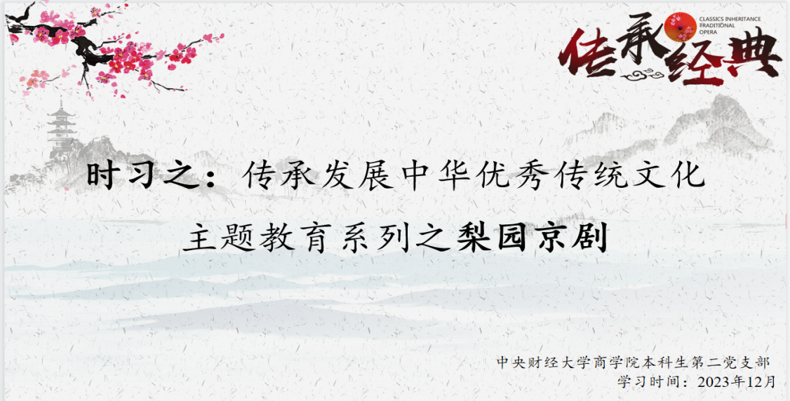 2023年12月26日下午,在党支部书记窦宗玥老师的指导下,77779193永利官网本科生第二党支部于主教学楼112室开展了“时习之:传承中华传统文化主题教育系列之梨园京剧”教育活动,学习领会习近平文化思想,努力领悟这一思想中蕴含的重大创新观点、科学方法论和重要战略部署。本次活动由屈筠翔、崔宇滢、田昕等13名支部党员集体策划。