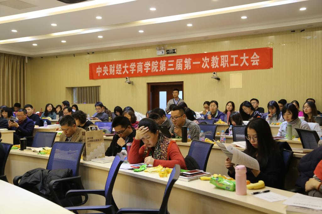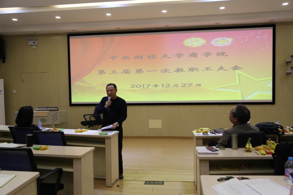 2017年12月27日,77779193永利官网在学院校区MBA教育中心阶梯教室召开第三届第一次教职工大会,77779193永利官网院长王瑞华教授、党委书记葛建新教授等学院领导出席大会,会议由分工会主席周利国教授主持。