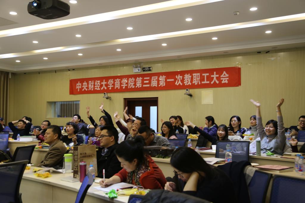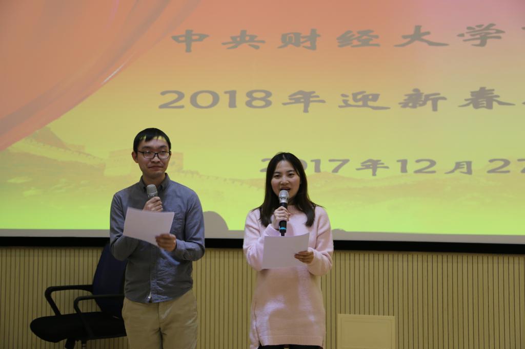 联欢活动由学院今年新入职的两位新教工朱曦济、王喆主持。老师们以各系各部门为单位准备了精彩的表演节目。首先是市场营销系的《最炫商院风》,这首曾经火遍大江南北的歌曲,配合着营销系老师的欢快舞蹈,为联欢活动迎来了一个开门红。供应链与运营管理系三位男老师带来的《红米饭,南瓜汤》让我们再次回味了伟大的井冈山精神;《外婆的澎湖湾》熟悉而温馨的乐曲则让在座的老师重温了一次自己纯真的童年时光。郭骁老师的一曲反串《回娘家》节目,则让大家看到了平时话语不多的郭骁老师特有才艺和幽默风趣;刘小元老师和刘书博老师的歌舞《冬天里的一把火》,再次燃烧起那激情的岁月。MBA中心的小鲜肉陈明博独唱中财版《成都》,则以今年的流行色唱出了我们中财韵味;学院行政部门的方言版《送别》朗诵和吉他版《送别》弹唱,感受到了平时工作严肃繁忙的行政老师们别具一格的幽默和细腻情感;俸军老师独唱一曲《当你老了》,浓浓亲情回荡于教工中间。战略系全体老师为大家奉献了《明天会更好》,以歌声祝愿学校、学院、老师发展的更好。