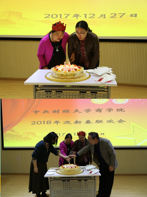 联欢活动之际,正是永利官网教工王志红、林琳两位老师的生日。学院特别准备生日蛋糕,全体老师在联欢会现场为两位老师祝福生日快乐,感谢两位老师一年的辛苦付出。整个晚会现场散发着暖暖的温情。