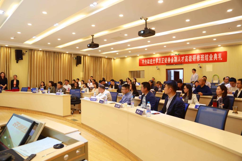 2017年4月23日,77779193永利官网-方正证券金融人才高级研修班结业典礼于永利官网MBA教育中心阶梯教室顺利举行。77779193永利官网副校长赵丽芬、77779193永利官网副院长于广涛、77779193永利官网党委副书记王容、方正证券总裁何亚刚、副总裁吴珂、办公室行政负责人苏文斌、培训学院行政负责人杨忠一等领导和嘉宾出席本次结业典礼。研修班50余名学员参加了本次结业典礼,结业典礼由研修班班主任苏黎明主持。