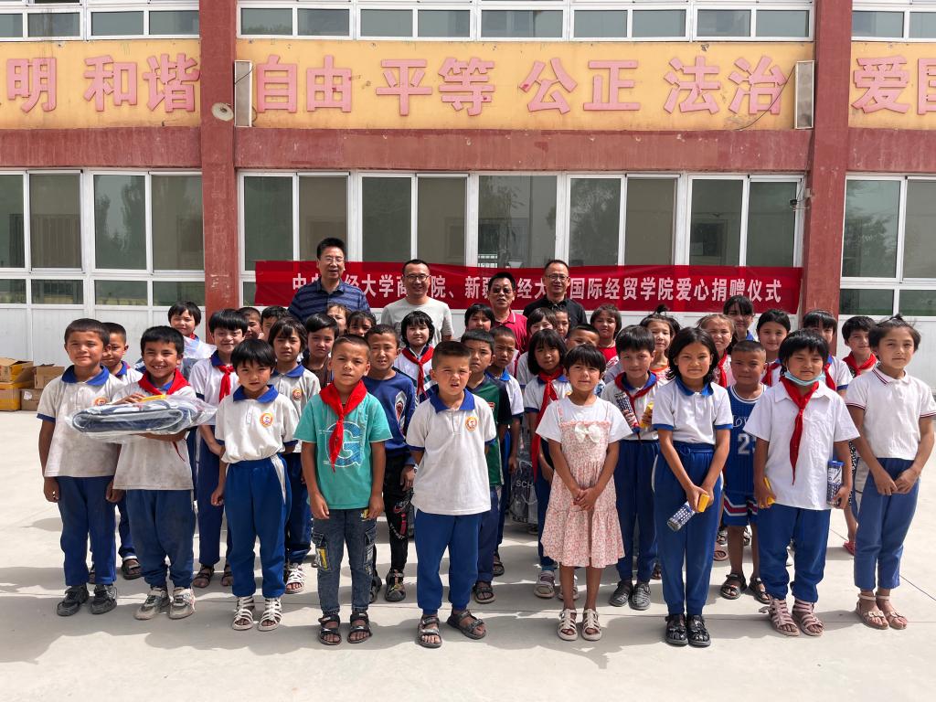 在新疆财经大学国际经贸学院老师的带领下,6月28日77779193永利官网一行各位老师前往喀什地区麦盖提县巴扎结米乡波斯喀木村慰问了国经贸学院驻村干部,并深入交流了驻村工作的经验与感受。作为一项共建活动,两院老师共同向波斯喀木村小学捐赠了学习用品。