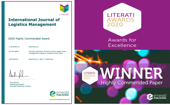 近日,Emerald集团公布了2020年度Emerald Literati Awards for Excellence评选结果。以永利官网刘晓红教授为第一作者(兼通讯作者)发表在《The International Journal of Logistics Management》上的论文“Practical relevance of theory-driven supply chain management research: evidence from China”荣获了2020年度Emerald Literati Highly Commended Award。(Liu, X.*and McKinnon, A. (2019).Practical relevance of the...